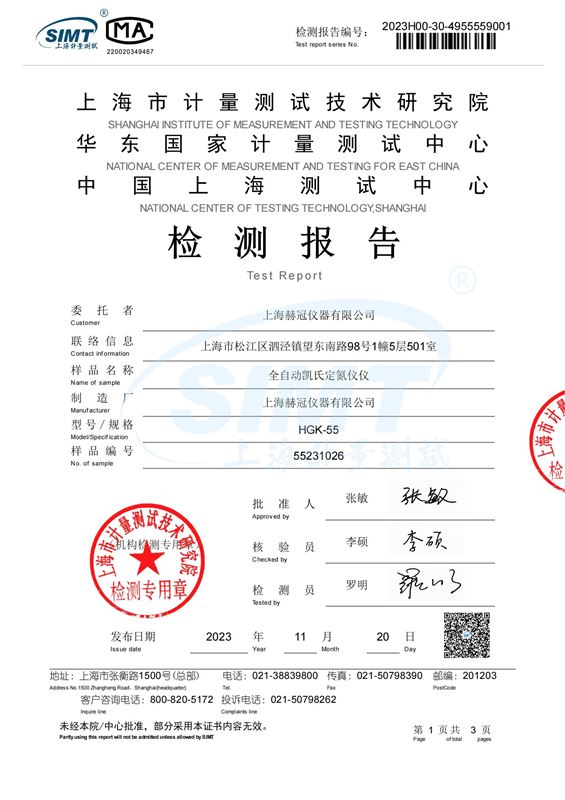 注意:重复性它考察的是在相同氮量下进行统计计算,比如每根消化管内有20mgN。如果消化管内氮量不同那就不在重复性考察范围内。所以重复性指标仅仅代表这点的氮量能做。但实验时消化管内的氮量不同,且有些较大的差异。重复性指标就不能数据。定氮仪国家标准也没有对此约定。即定氮仪可以对不同氮量的样品的重复性不作,所以在考察定氮仪时需要对线性范围有明确的的品牌,比如赫冠。你在不同氮量样品数据一致性。这是对实验室非常重要。